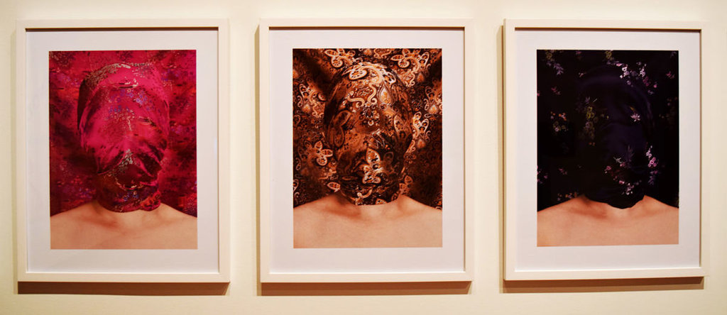 The series of photographs by Chun Hua Catherine Dong, titled, Skin Deep examines shame in relations to the body, associated with vulnerability in its personal and socio-political dimensions. In these images the artist examines the word shame (to cover) as a cultural symbol. She wraps her face with beautiful Chinese silk, giving the images the mixed meaning of beauty and danger, since it is suffocating under the fabric as we can see in the accompanying video. She emphasizes the notion of shame, or “losing face”, that is deeply rooted in Chinese culture, meaning to let down yourself, your family or culture. Under the silk the artist literally and metaphorically loses her face and with it her Chinese identity as well.