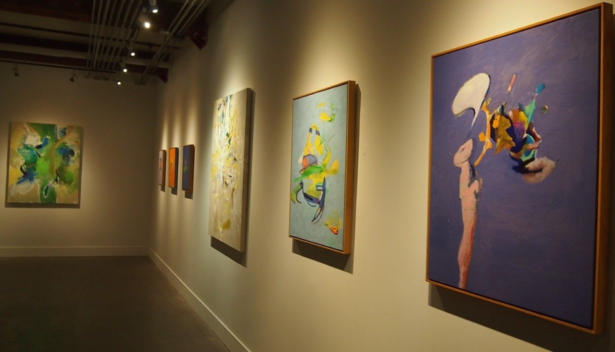 On one of the larger pieces, titled Promise, hues of light blue and stronger yellow are moving in all directions, creating spatial depth with colors. It is a very warm piece to look at, also a beautiful one that complement the other, more darker ones, with the lightness radiating from it. The artist said that she likes the way the show is curated since it balances the darker and lighter paintings very well.