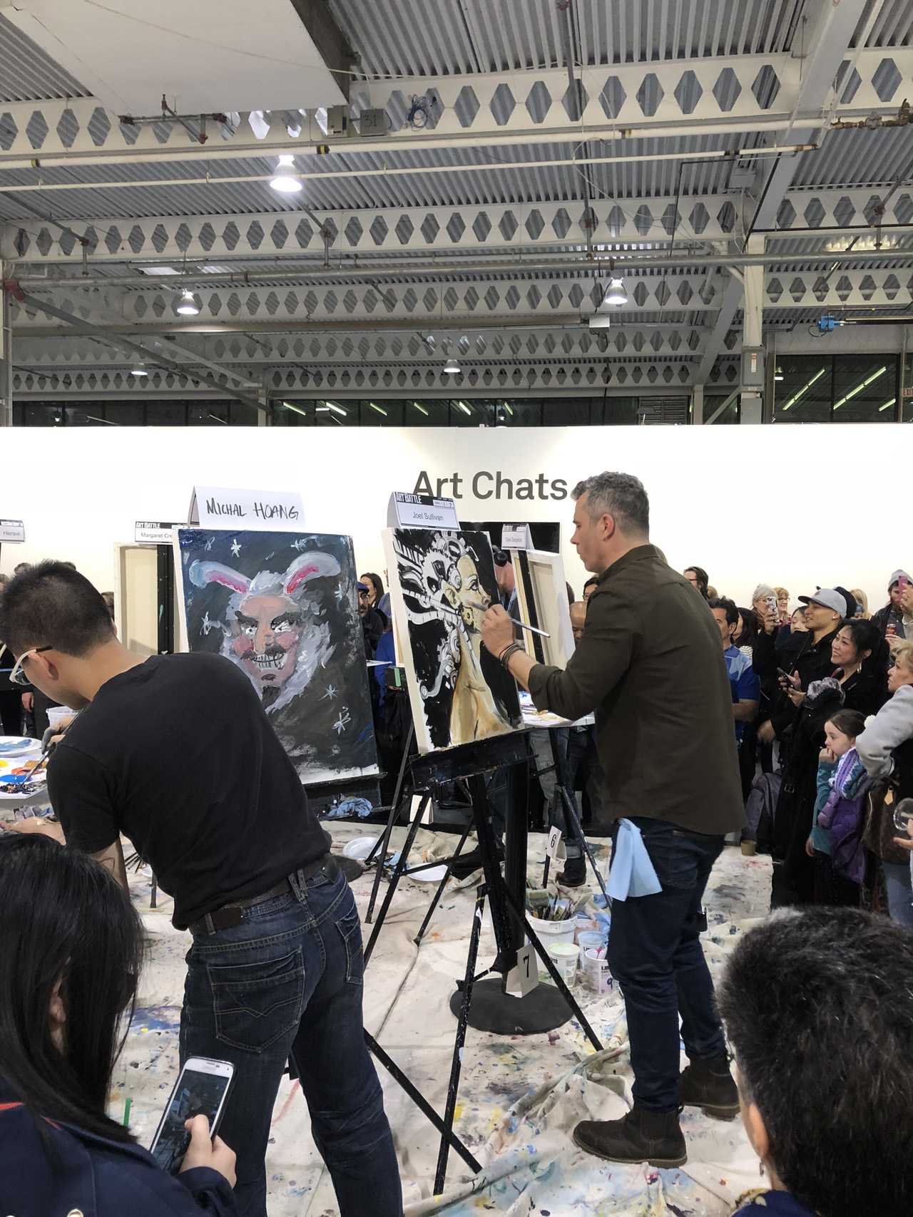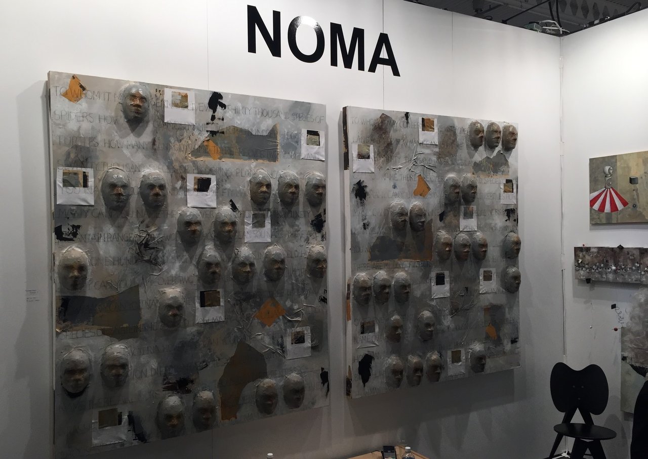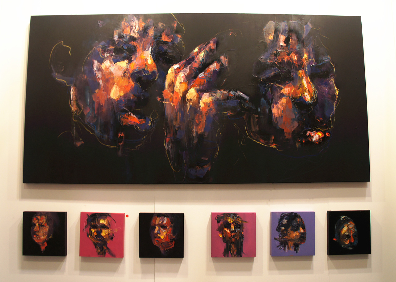 One of the initial booths that established itself as a cohesive and powerful body of work was Dania Elcharbini’s, a striking collection of greyscale and gold. Deeper exploration into the paintings revealed that the artist had created these beautiful portraits and figurative compositions with the intent to inject unnatural and inhuman textures into otherwise familiar forms. Closer proximity to the work revealed these hidden ripples, roughness and patterns that from afar would be easily missed. The series managed to seduce audiences from a variety of backgrounds, hijacking the social values and aesthetics of gold.