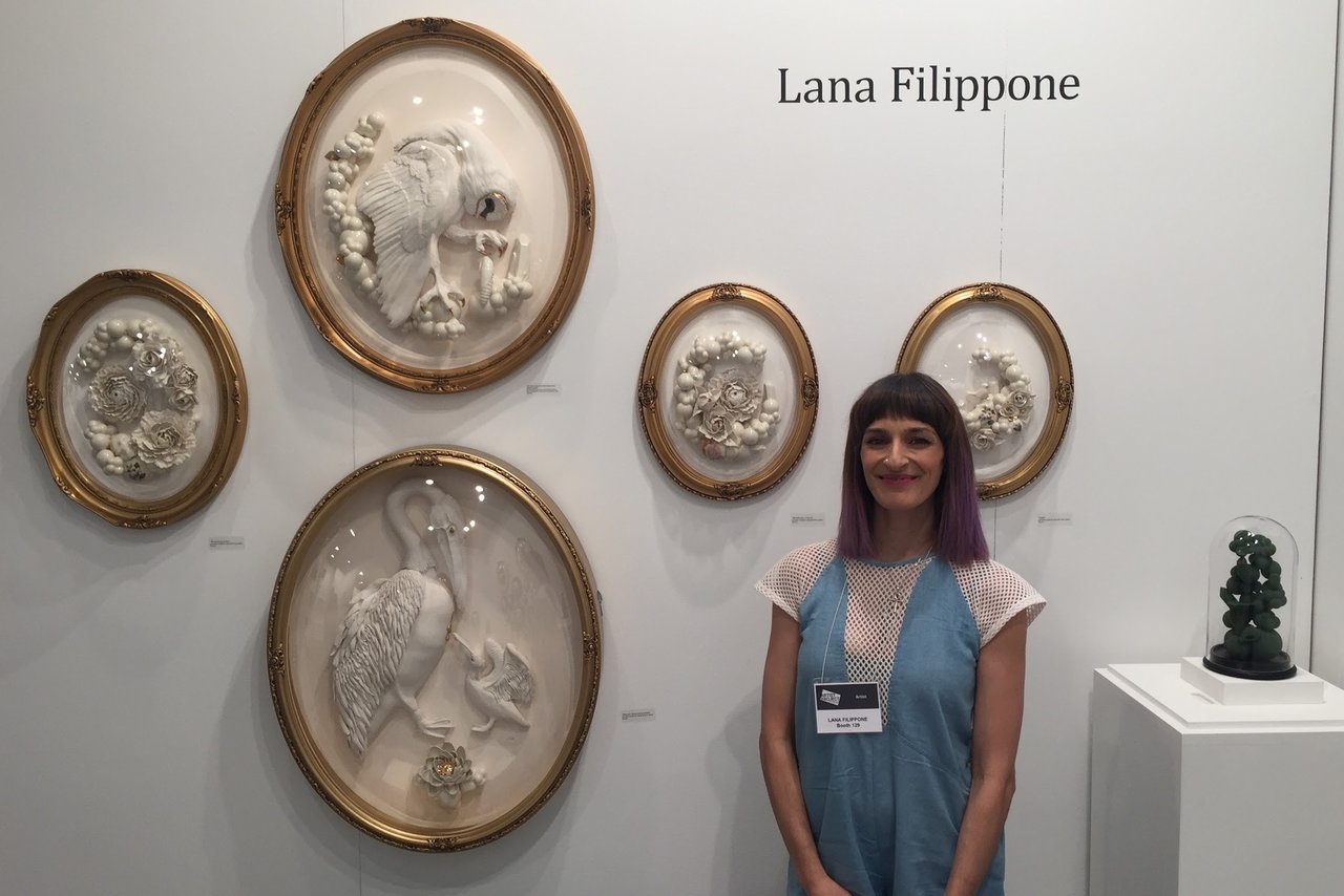 Another artist whom enthralled audiences was Lana Filippone. Her work was exhibited in the Salon National de Beaux Arts within the L’oeuvre in Paris, as recently as December 2016. Her porcelain pieces are heavily inspired by ancient alchemy. Animals, flowers, body parts and organs retrieved their ancient symbolism and mythologies to compose vignettes of allegorical scenes describing the artist’s personal and critical views on modern life. The works themselves held their own autonomy, only a brief conversation with the artist unveiled their true meaning.