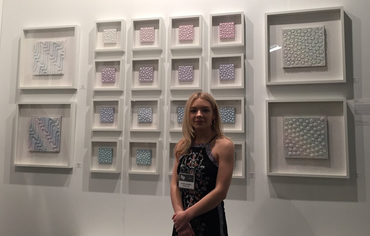 Another talented participant in the Untapped section, Sierra Barber uses encaustic medium to compose her series of textured and layered works. She described her work as “perfect for Spring” which resonated true, since the work resonated with the traditionally pastel palette of Easter and the Spring Equinox.