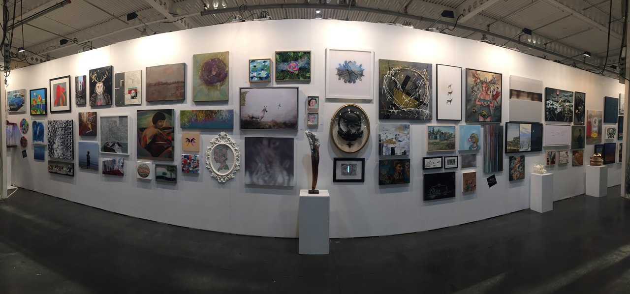 Next, audiences are led to an array of work submitted to the Artist Project’s sponsored competition. The dedicated wall was filled with submissions from nearly, if not all, of the participating artists in the fair. The theme, inspired by the Swiss matchmaking company Swatch, was the colloquial interpretation of “Time Flies”. Artists from the fair responded to the theme, in a variety of ways, to compete, in accompaniment of the voting participants, for prizes and recognition. The salon-style assemblage of work proved as an introductory taste of the full exhibition taking place further within the venue. Themes emerged from the vast spectrum of work, such as the trending social media hashtag “Time’s Up”, as well as symbolic or metaphorical representations of the expression.