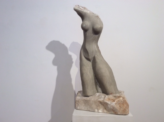 Elizabeth Merei’s alabaster sculpture Windswept, a female figure, a torso indeed, conveys vitality and movement mixing a classical motive with a semi-abstract form. There is a tension between the smoothness of the body and the rough surface of the base, showing the double nature of the stone. Also made of alabaster, Irene Sirko’s Awakening seems to radiate light from the inside. Many believe that stones have spirits and in this piece we can witness as a spirit comes into life through pulsation of light and the movement of the curved surface. Angela Verlaeckt-Clark, Stone Clouds and Mary Ellen Farrow, Essence beautifully capture the elements of nature in grateful movements while also treasure the marble, bringing out the stone’s inner beauty.