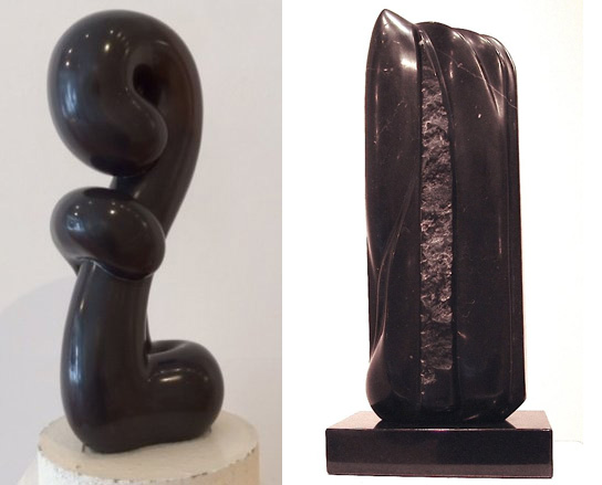 Daniel Yu, Principle Fundamentals, African wonderstone (left) and Yeon-Tak Chang, Waterfall, black carrara marble (right)
