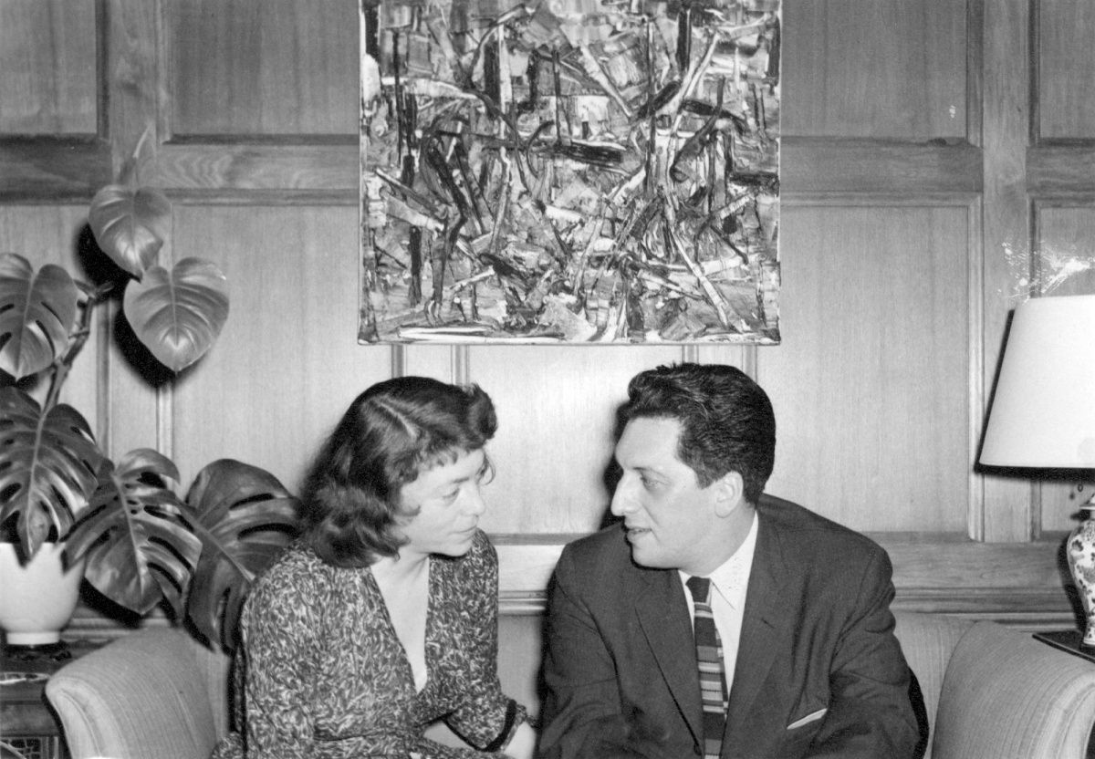 Anonymous photographer, Joan Mitchell and Jean Paul Riopelle in Chicago, about 1957. Yseult Riopelle Archives. Work shown: Jean Paul Riopelle, Untitled, about 1957. Oil on canvas, 60 × 73 cm. Private collection © Estate of Jean Paul Riopelle / SODRAC (2017)