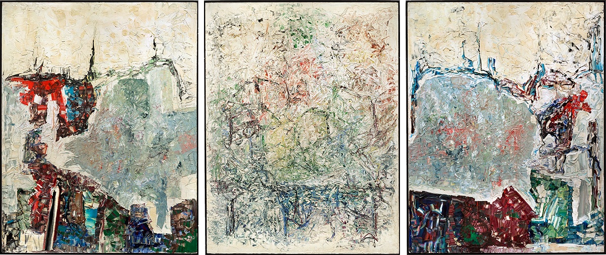 Jean Paul Riopelle, Large Triptych, 1964. Oil on canvas, 276.4 × 643.7 cm. Hirshhorn Museum and Sculpture Garden, Smithsonian Institution, Washington, DC. Gift of Joseph H. Hirshhorn, 1966 (66.4268) © Estate of Jean Paul Riopelle / SODRAC (2018). Photo: HMSG, Smithsonian Institution, Washington, DC, Cathy Carver