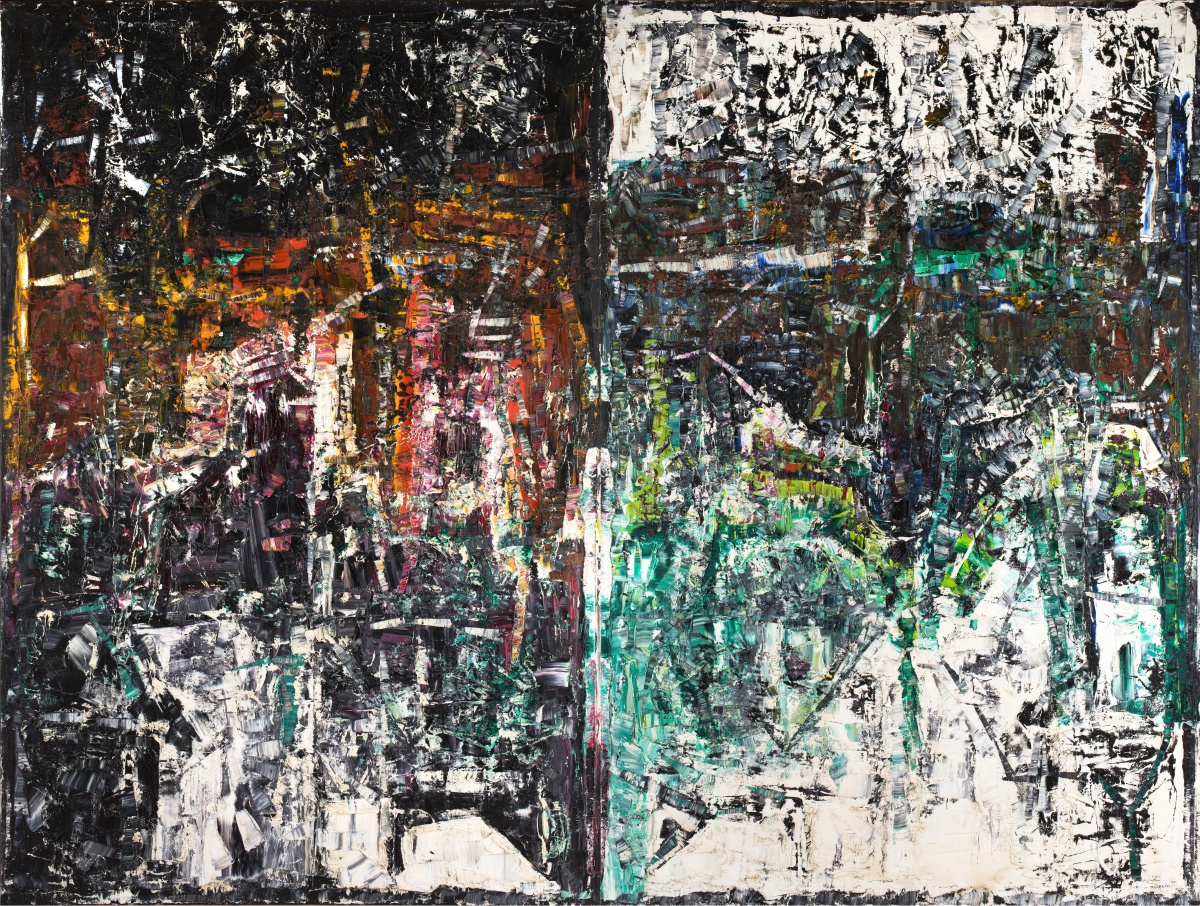 Jean Paul Riopelle, Micmac, 1975, Oil on canvas. 300 × 400 cm (diptych). Collection Sylvie Blatazart-Eon, Paris. © Estate of Jean Paul Riopelle / SODRAC (2018).