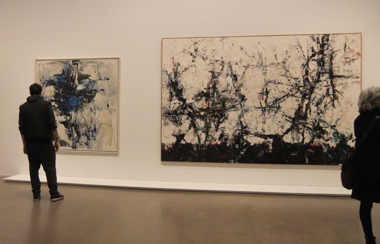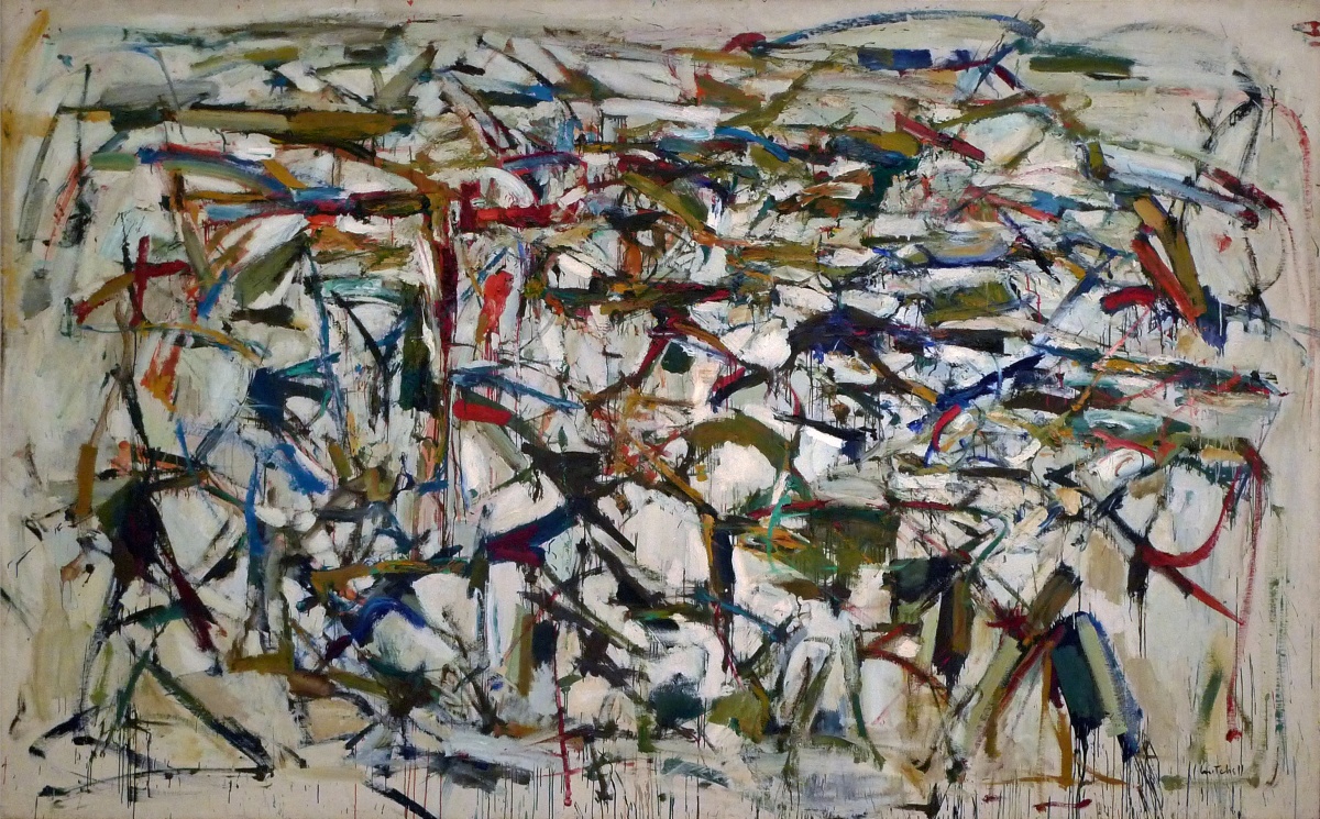 The artists of the first generation of Abstract Expressionism in New York, like Willem de Kooning, Hans Hofman, Franz Kline, Jackson Pollock and the poet Frank O’Hara among others, created an important movement and a new centre of visual art started to build up around them. The New York art world in the early 1950s was dominated by men but Mitchell, who spoke frankly, aggressively and emphasized that her gender was not important, but being a painter was, established her significance among them.