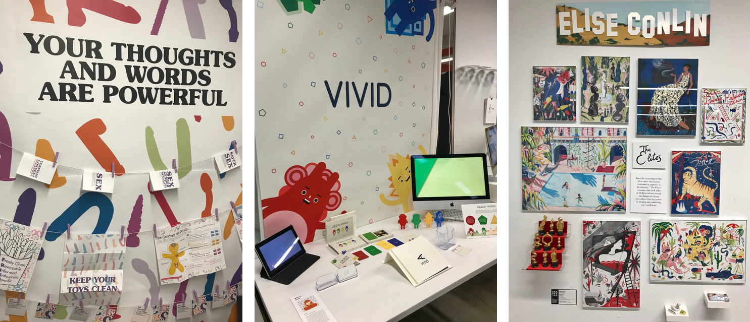 Work by design students similarly responds to current cultural trends through various lenses. Creating work that is politically charged and responds to consumers’ needs through concepts which aim to further inclusiveness in society.