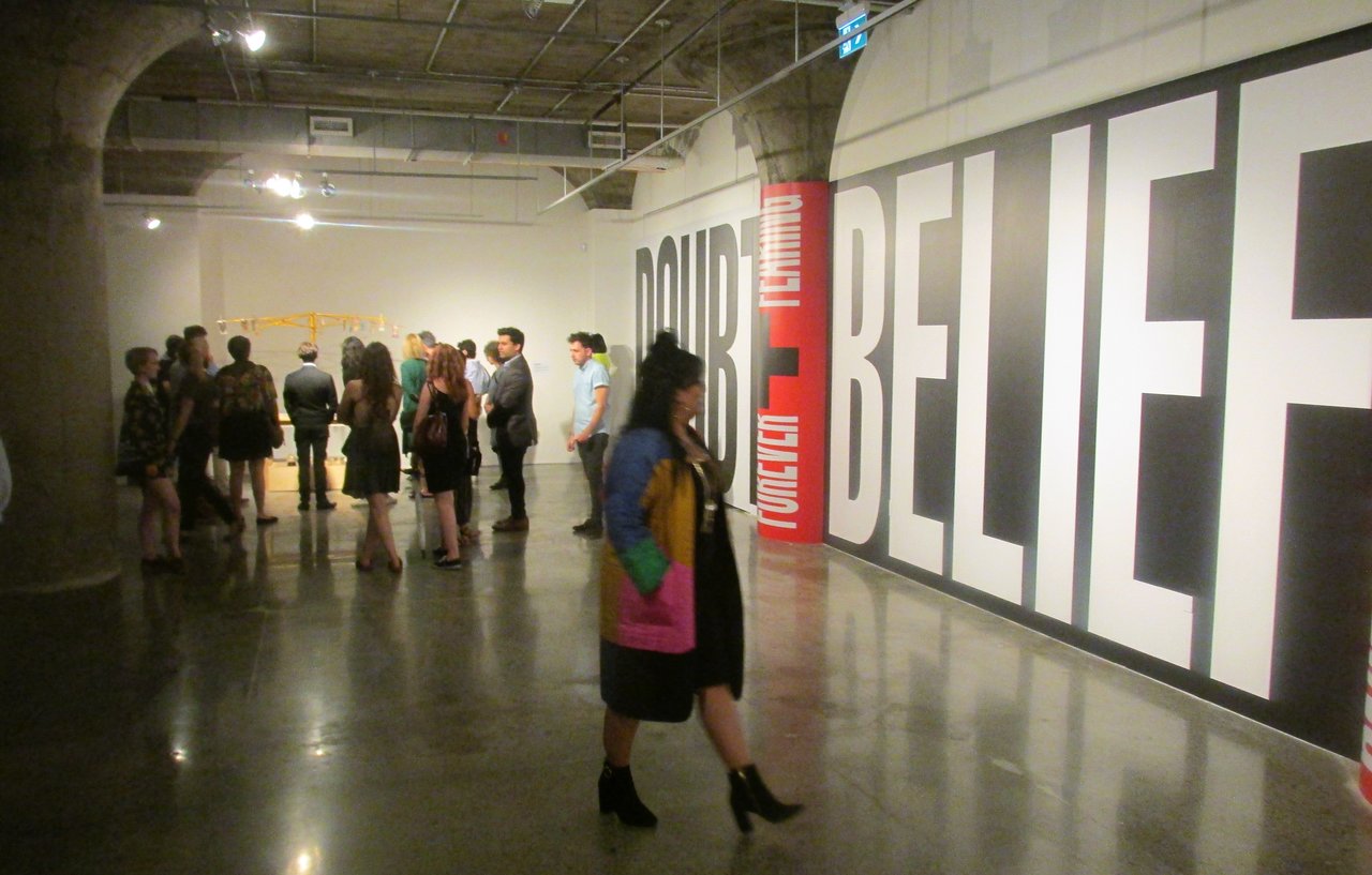 Good things are worth waiting for. Judging from the two long winding lineups of members and guests snaking around the building, people were ready to check out the newly renovated space and MOCA’s curator, David Liss’ inaugural exhibition, BELIEVE.