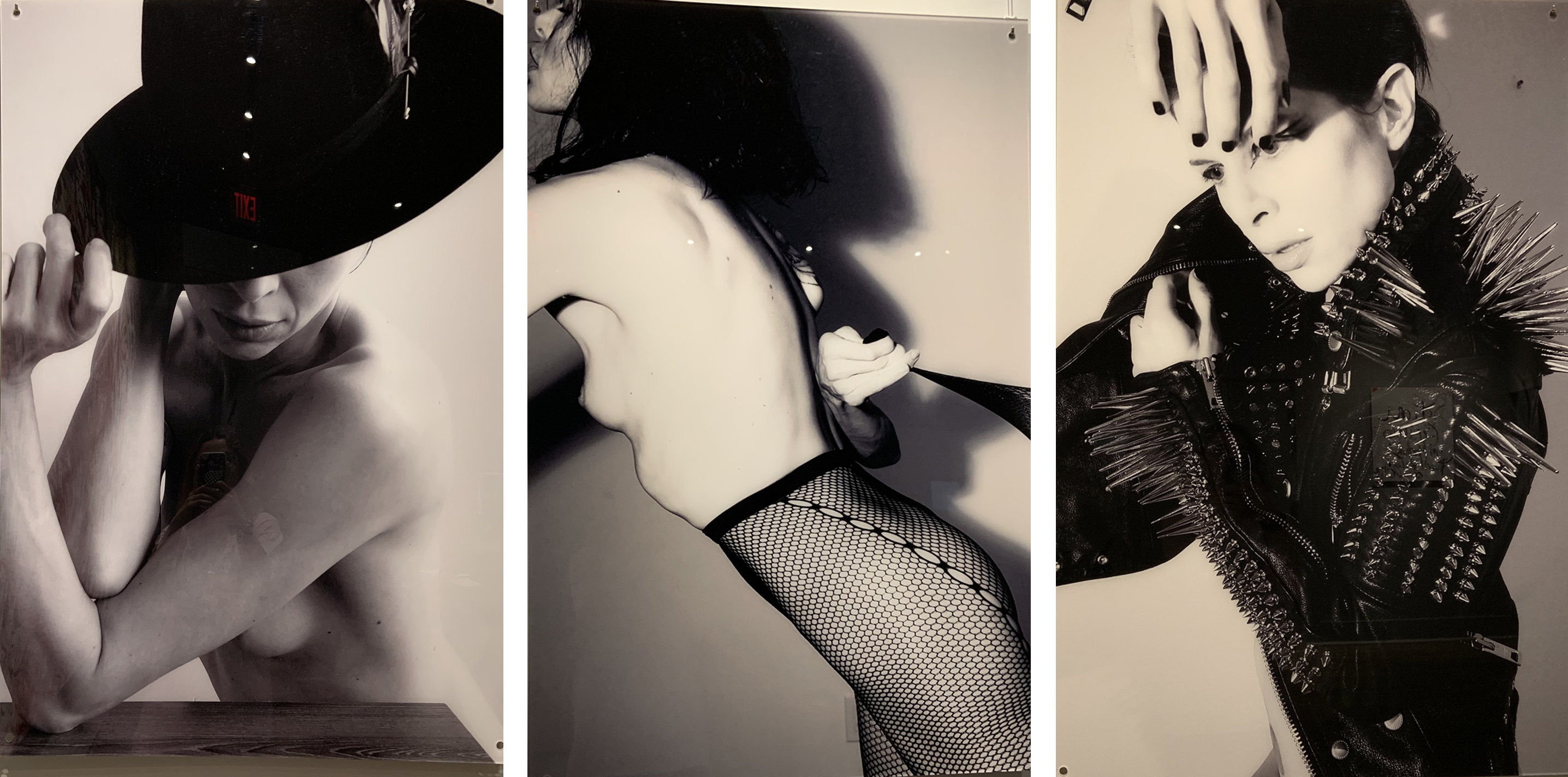 (L-R) I Like To Be Naked, 114 x 76 cm; Bound, 115 x 76 cm and La Dame de Pique, 115 x 76 cm, both print on acrylic