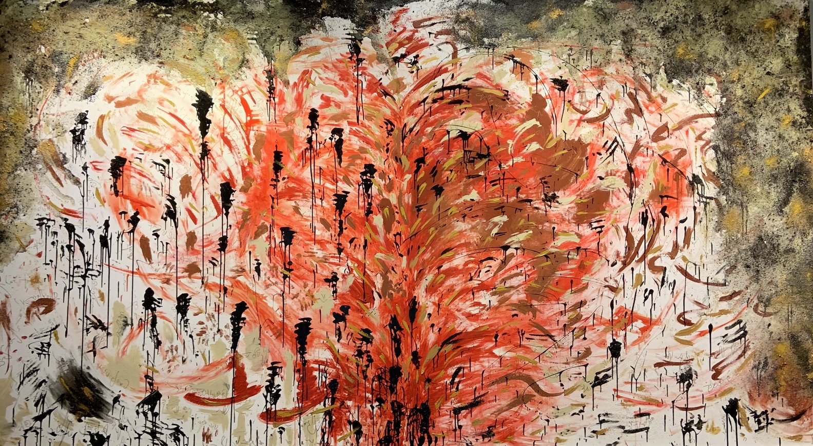 Earth Voice (Dance With Me Collection), ink and acrylic on canvas, 203 x 366 cm