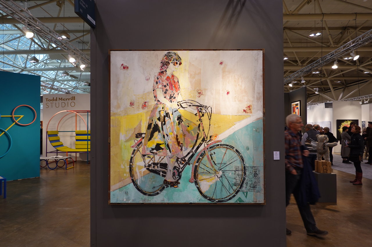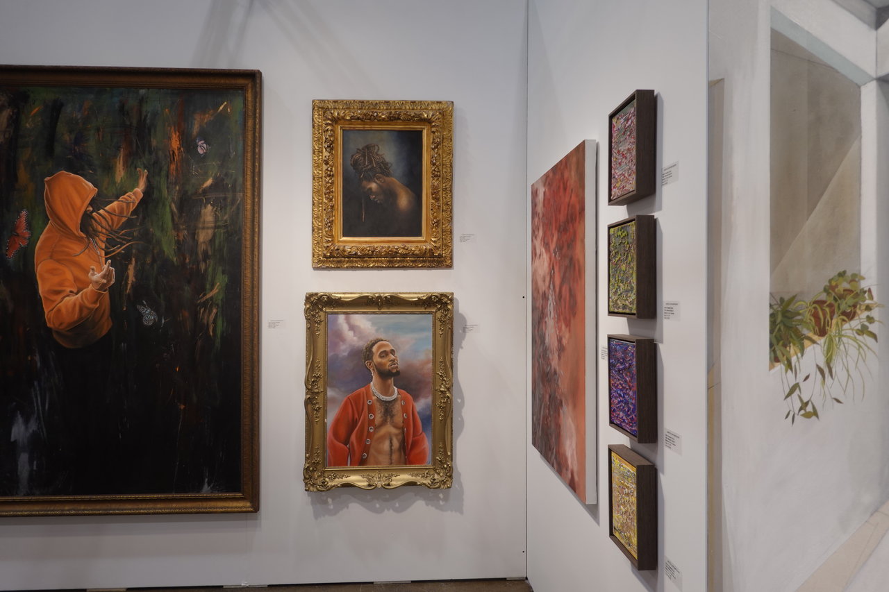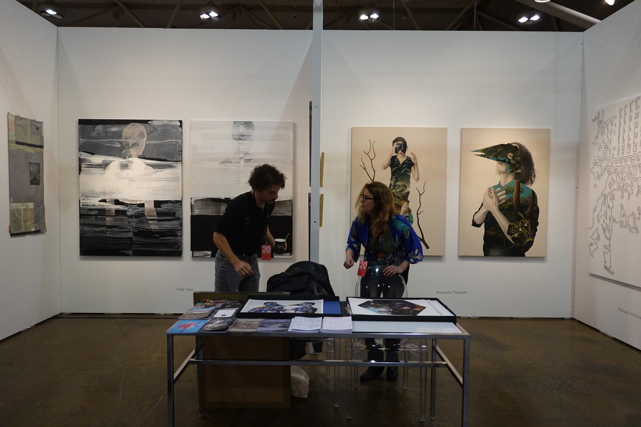 Installation view with Mersuka Dopazo’s painting, Olga from Rebecca Hossack Art Gallery, London UK (in front) and Todd Meril Studio, New York, US (left)