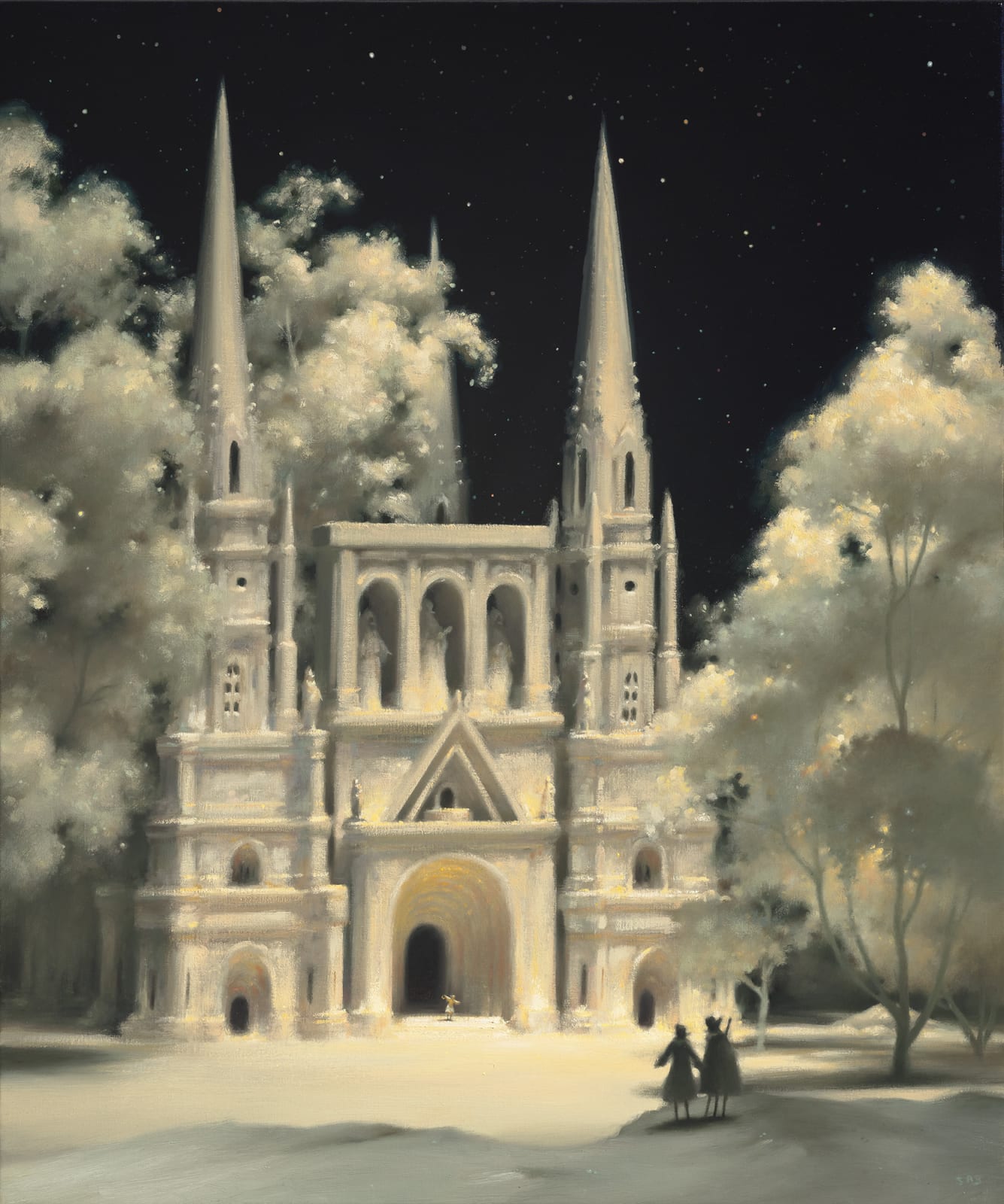 Stephen Appleby-Barr is an artist, traveller, and creator of worlds. Above the Clouds, Below the Sky, currently being exhibited at the Nicholas Metivier Gallery. is a display of the beauty of the real world intertwined with the fantastical. Appleby-Barr has been greatly influenced by the architecture seen during his travels including the Duomo in Florence and the Arc de Triomphe in Paris. He sculpts small fantasy figures and flora and then puts them into marquettes, so he can shift them around to explore and find the image to paint, creating a world between fantasy and reality. These paintings include the absurd, the unseen; they dare you to desire them, to step closer, to dissolve into the unknown.