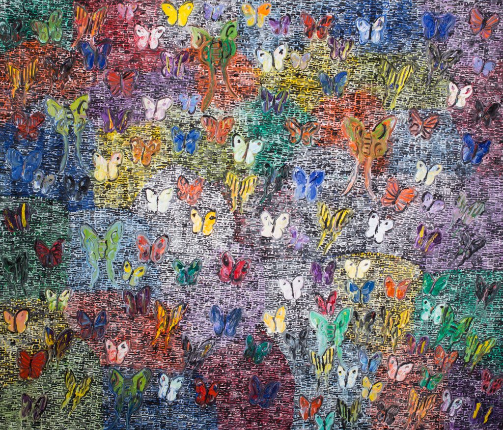 Hunt Slonem, Paul’s Palace, 2017, oil with diamond dust on canvas, 50” x 60”
