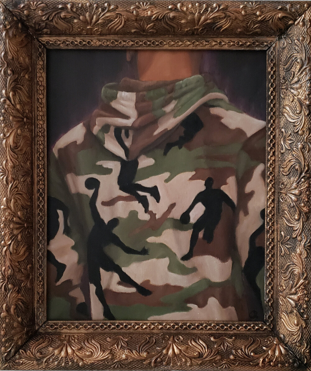 GS: This show is really my first time directly depicting sport related imagery with my work. I think that I have matured as an artist to develop concepts around sport that I could execute that wouldn’t diminish the importance of sport as a way to better one’s life and also allow reflection on how athletics can also limit how Black men are perceived. The critical question being that when one doesn’t fit that idea of what Black masculinity is supposed to be and you are part of that marginalized group, how do you find your place within that group? Another question is where did the concept of the strength of Black men come from?
