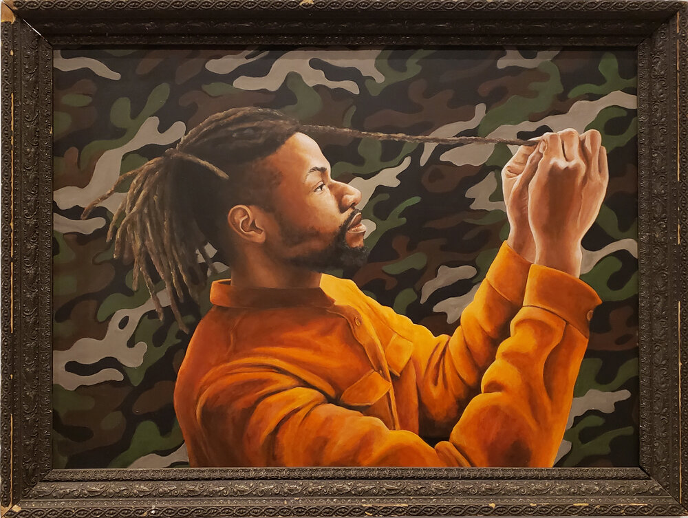 GS: I really started painting on a dare by my partner. He encouraged me to paint my own version of a bow tie print that I admired instead of buying it. I had some student grade paint lying around and gave it a shot. I had no intention of becoming a painter let alone a portrait painter. I really enjoyed challenging myself and pushing beyond my comfort zone in order to try to improve my skills. The more I painted, the more I realized that I could convey meaning in my work as well as develop my technical ability.