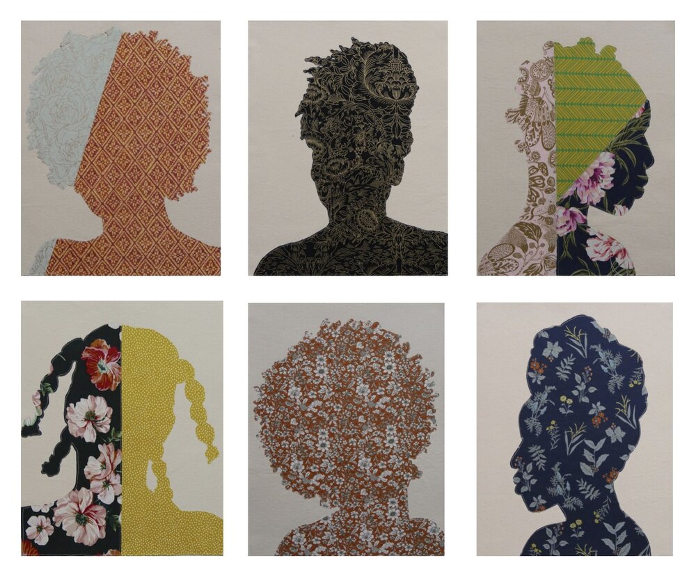 Gio Swaby, Study of Self, 2020, fabric and thread on canvas, 11” x 14” each