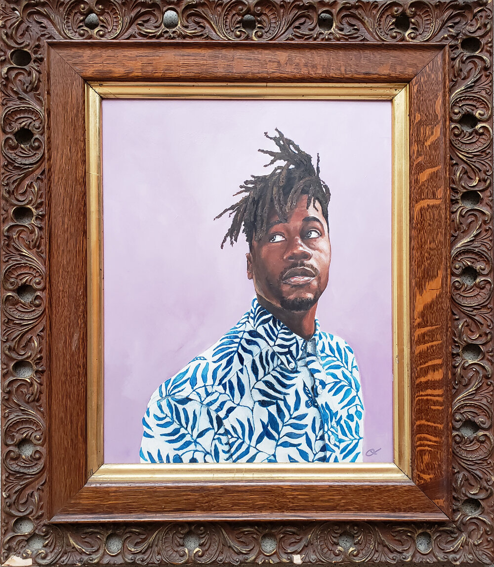 Gordon Shadrach, Steadfast, 2020, oil and acrylic on birch panel, antique frame, 12” x 14”