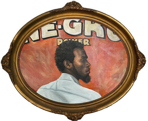Gordon Shadrach, Yield, 2020, oil and acrylic on wood, antique frame, 25” x 31.25”