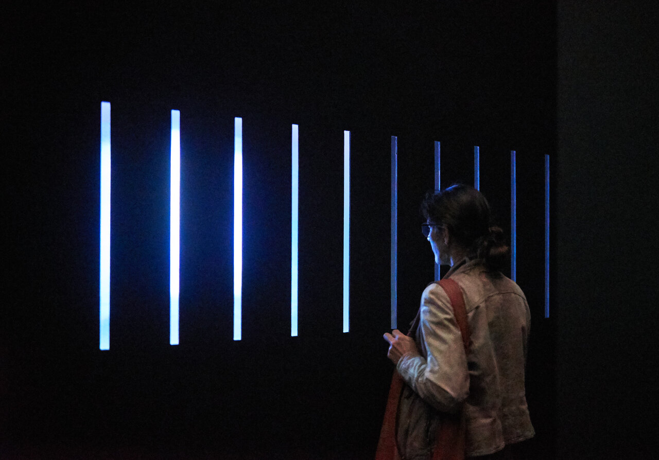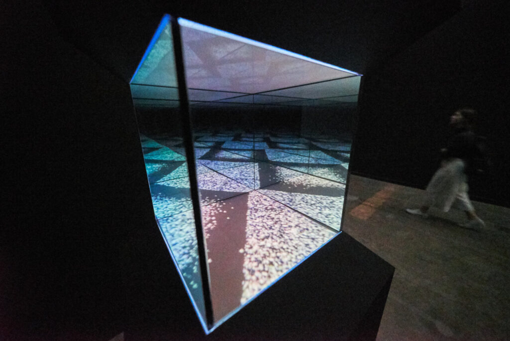 Nihilistic forebodings aside, Richardson is a master of technological aesthetics. Walking into the installation ‘Sands Stand Still’ for example, you peer through surveillance mirrors into a box that is sporadically bombarded by cathode rays. This produces specks of light that are endlessly reflected out in every direction by the mirrored walls. The illuminations are converted into an accompanying hypnotic soundscape. The effect is mesmerising.