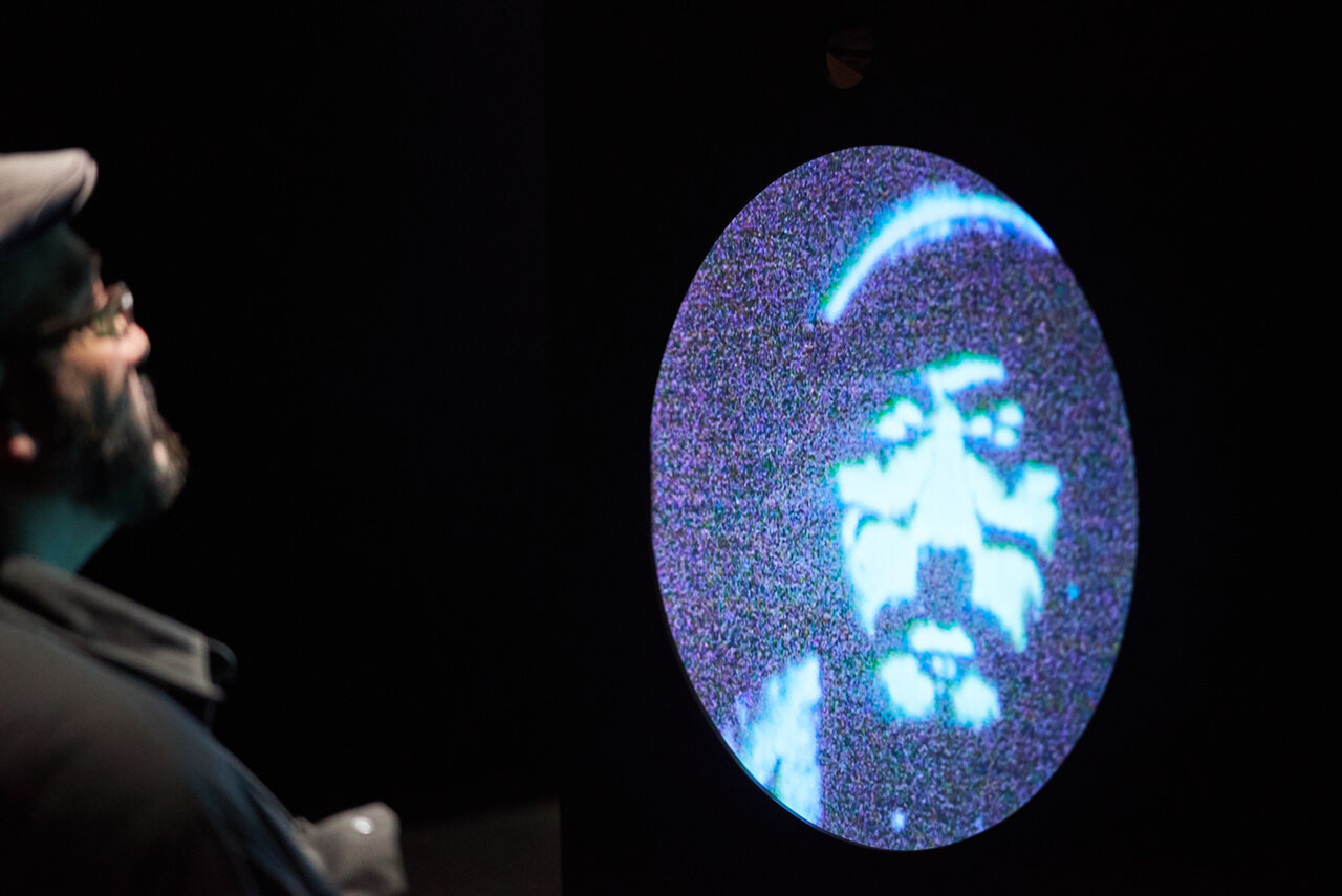 Behind a heavy curtain in the spacious Arsenal Contemporary Art lies a set of six video installations titled Kali Yuga. The phrase refers to a Hindu myth and translates from Sanskrit as the ‘Age of Vice’. Its creator, Tasman Richardson, is a Toronto-based media artist who exhibits internationally. The Vedic myth offers a version of the theory that the world is cyclical, that is, characterised by an unending process of creation and destruction. Our current age is the last, at which point the creator awakens from a dream state and thereby brings about the end of the world. It is an age defined by degeneration and corruption. The one sin of ours that Richardson focuses on especially is the obsession with the self, i.e., narcissicism.