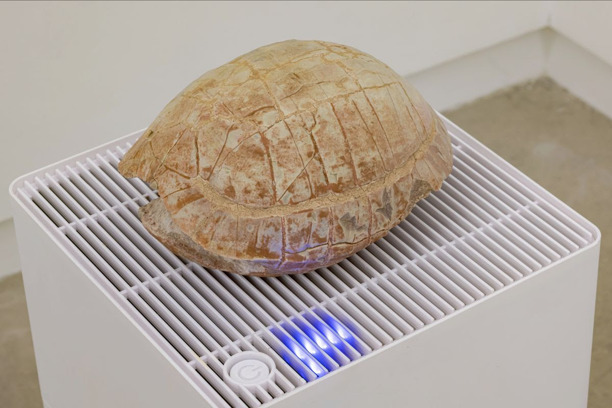 Jason de Haan, Free and Easy Wanderer (Yellow River), 2014, found fossil, humidifier (white), concrete, 12 x 10 x 17 inches (detail)
