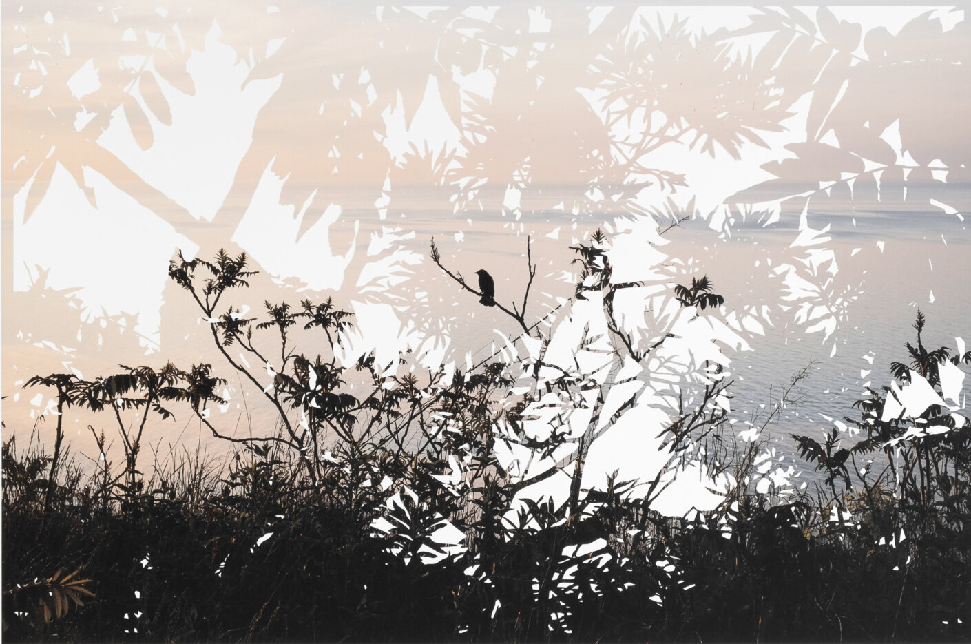 Fiona Freemark, Blackbird at Sunrise, Hand-cut photograph, 26.75” x 40”