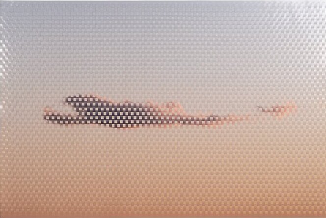 In the process of interweaving, many of her works have a pixilated effect, such as October Sunset. This fuses technology and nature, an often binary contrast, making the sunset seem like a tangible object.