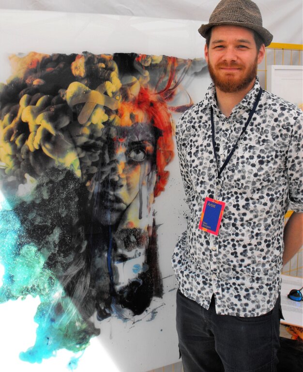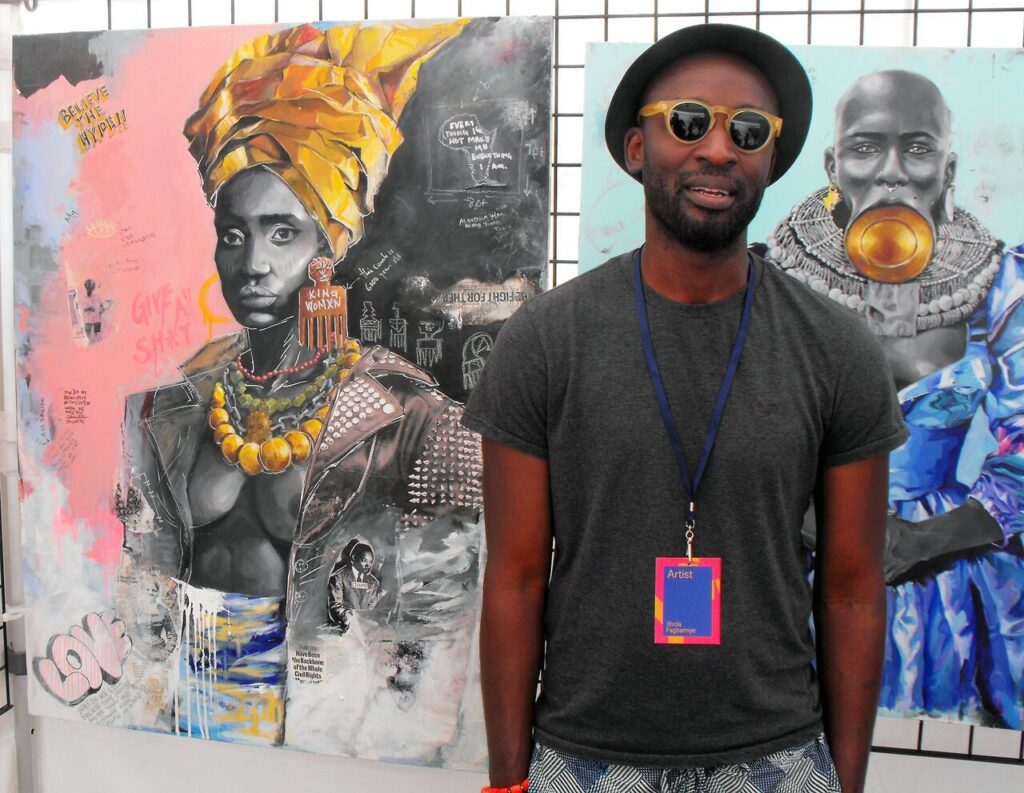 It was great to see such a variety of different works from so many artists. Alisa McRonald had some colourful fibre-based works and had travelled from Guelph to exhibit her works. Montreal artist, Julien Kandolo was still setting up his booth but was elated to already have lots of visitors to his booth. Urban themed artist, Karen Shaddick was pleased with the start of the Fair as was artist, Jibola Fagbamiye whose work caught my eye.
