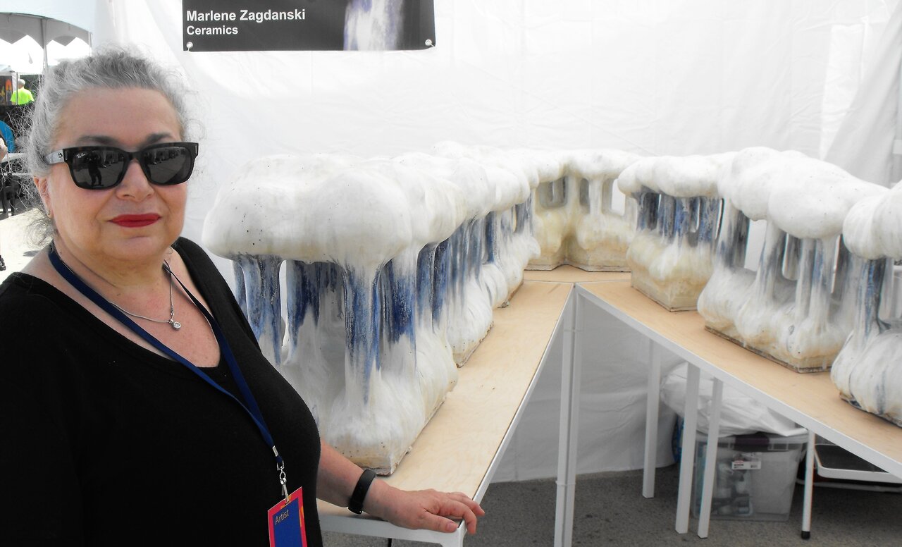 I talked to several artists from Montreal such as Marc Bourgeois and Julie Desmarais among others. They were happy to participate in the Fair and glad it was back to the live version. Montrealer ceramic artist Marlene Zagdanski was in good spirits and as a retired lawyer, now she had more time to be creative.