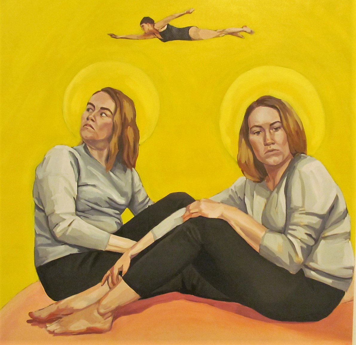 Jónína Björg Helgadóttir, Swims, oil on canvas 40″ x 40″