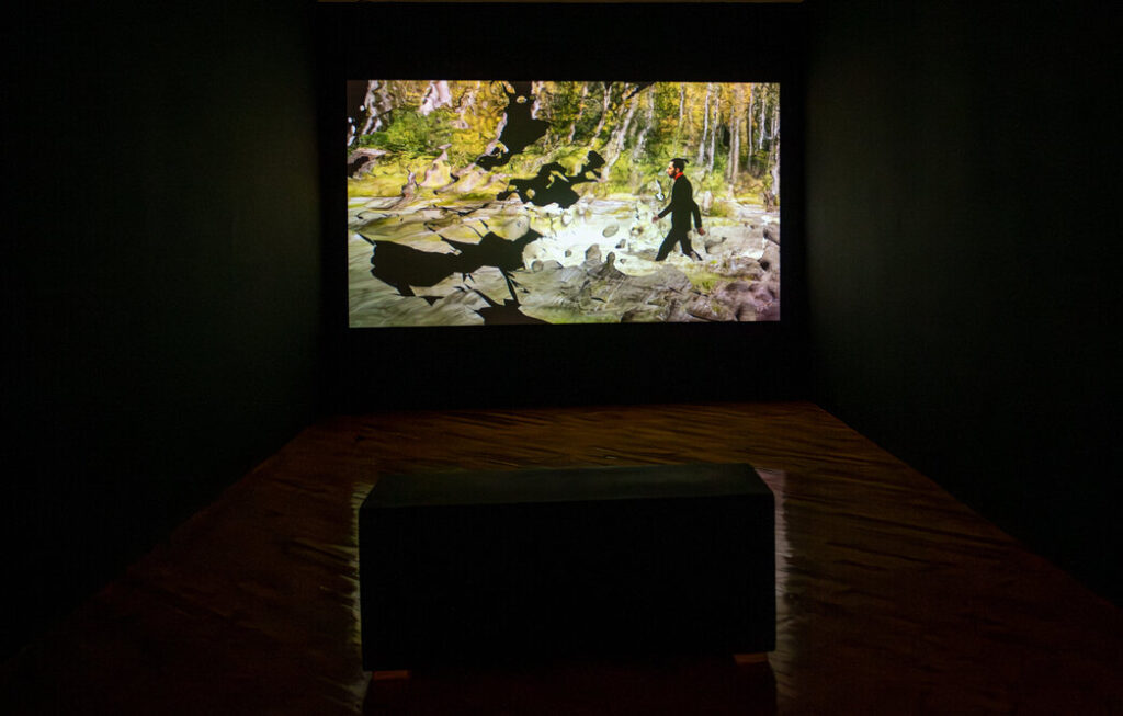 Installation view of Persijn Broersen and Margit Lukács, Forest on Location, 2018 (HD Video and Sound, 11:45 minutes). Photo: Selina Whittaker. Courtesy of A Space Gallery, Toronto