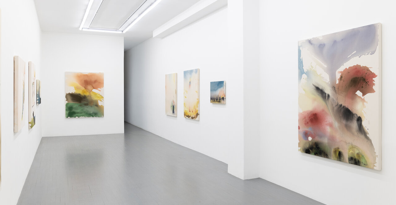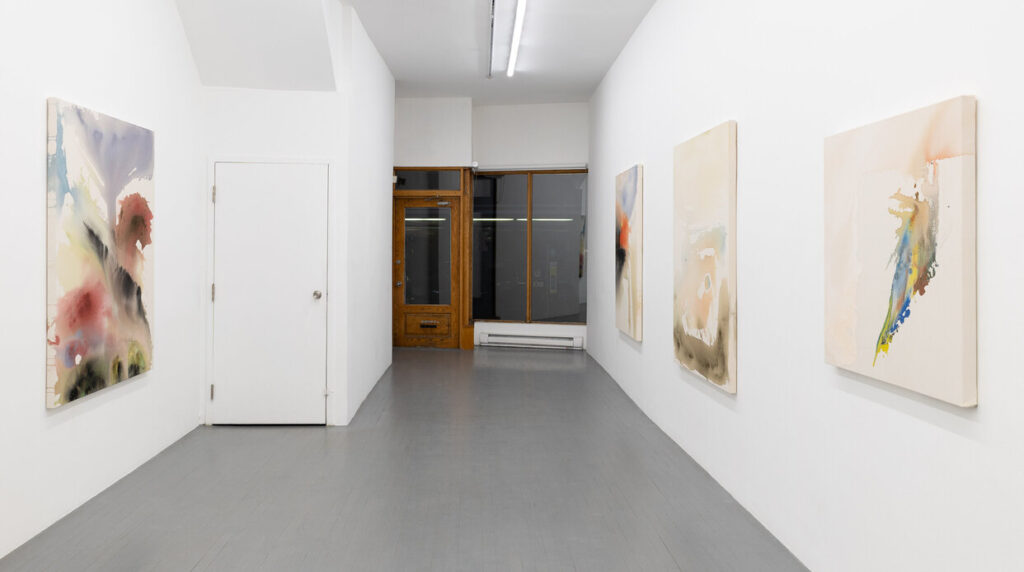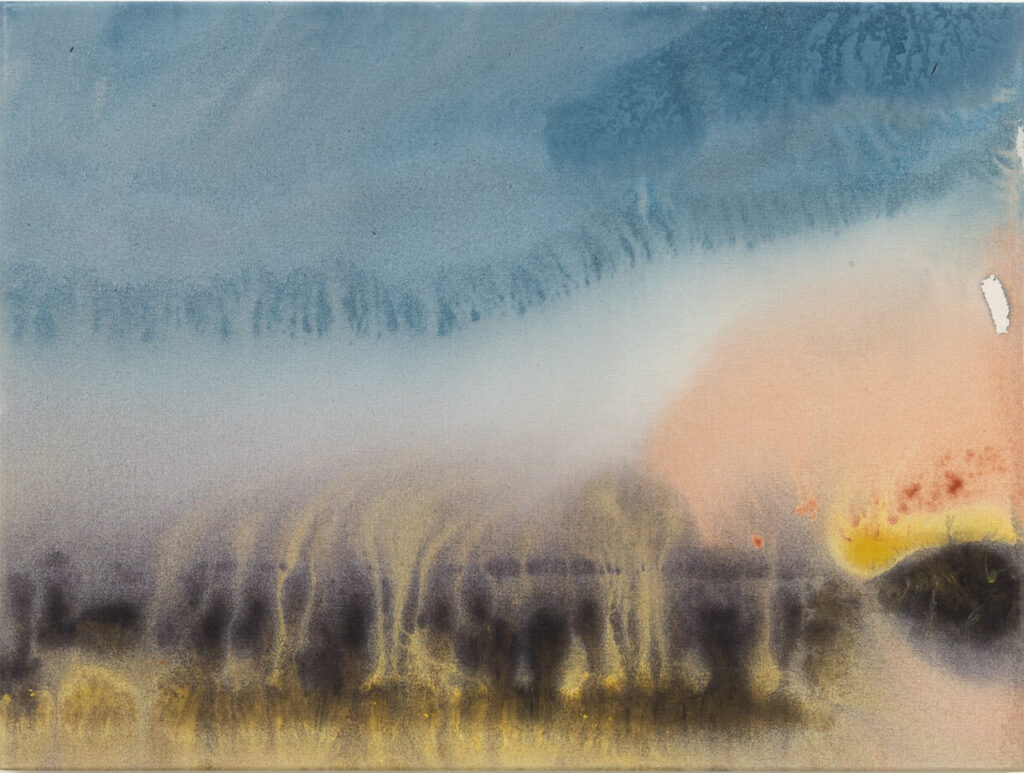 Eduardz offers up ten medium-sized images produced by pouring gouache paint on raw canvas. The result is a series of quiet, alluring paintings. I’m a sucker for beautiful works like these, so I’m easily pulled in. They are a siren call in paint. Tie me to the mast. The reference to classicism is not wholly inapt here. Eduardz gives the paintings titles that allude to another world, or the very edges of this one, that include words like ‘phantom’, ‘spirit’ and ‘twilight’. Indeed, several of the images intimate an eerie landscape that one could imagine Odysseus travelling through.