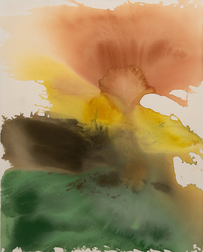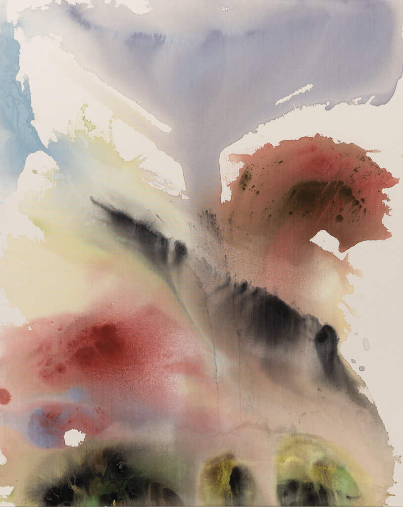 His paintings lend themselves to interpretation in the manner of a Rorschach test, especially given the randomness of many of the marks. For instance, when I look at his The Spirit Casts a Thousand Eyes, I see the dark blots at the bottom as two sleeping figures. But that is only one aspect of his work. Whatever feelings this painting elicits in me are of course hard to put into words. Ironically, abstract painting is like poetry in this regard (where conversely representational painting is like prose in writing). Haiku poet Yosa Buson once described haiku as using ordinary language to be excluded from the ordinary. Our words quite generally have everyday uses. The poet, however, aims to use words not to describe things literally, but rather to free language from its ordinary uses. Likewise, good abstract painting aims to free such formal qualities as colour and space from their ordinary expressions and interpretations.