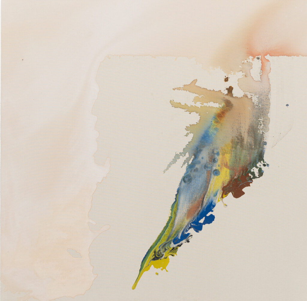 Given the stochastic nature of the painting process employed by Eduardz, the titles he gives them can merely be suggestive. Still, at times, these abstractions are reminiscent of, say, JMW Turner’s late ethereal landscapes, e.g., Norham Castle, Sunrise. But, more obviously, they bear a marked resemblance to the works of Helen Frankenthaler, who also used the technique of pouring paint onto a horizontal canvas. Indeed, his work is best described as being in the shadow of Frankenthaler’s. By this I mean that Eduardz is his own artist, not trying to imitate Frankenthaler, but, all the same, the association with her work seems unavoidable.