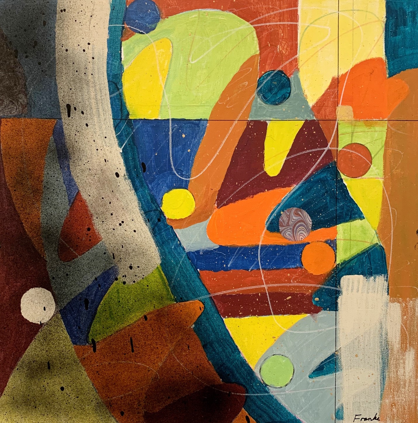 Sandra Franke, Journey in the City, acrylic on canvas, 20 x 20 inches