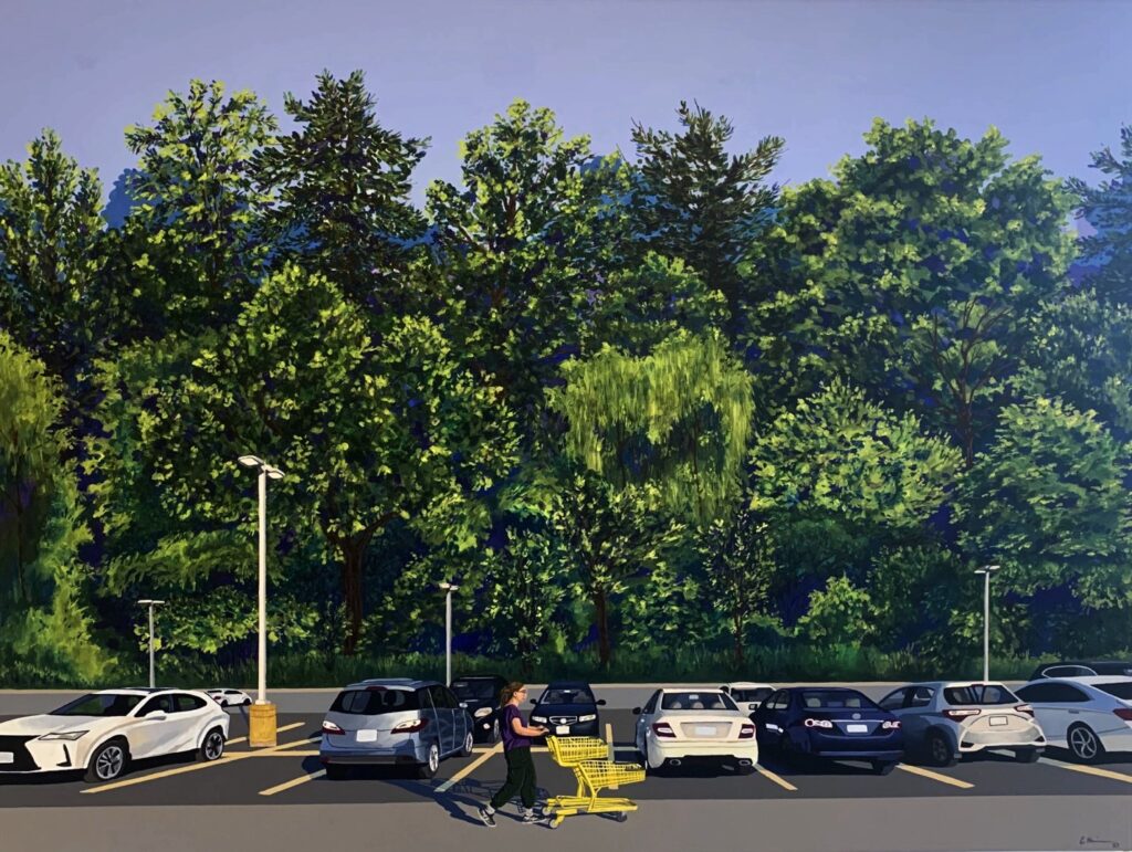 The artist’s choice of a supermarket parking lot is a fascinating one. One wonders if the natural landscape in the background symbolizes hope, a reminder of the natural world persisting within the urban sprawl. Or perhaps it is a subtle critique highlighting the encroachment of development on natural spaces. This piece will surely spark a deeper look at the dichotomy of Toronto’s urban-nature.