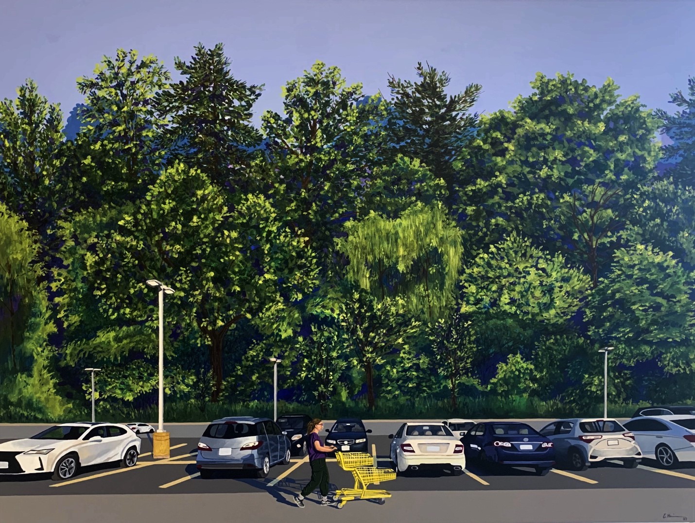 Elnaz Hessani Pilehrood, No Frills Parking Lot, acrylic on canvas, 30 x 40 inches