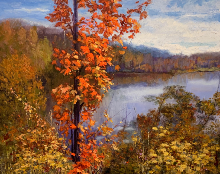 Impressions of Beauty is a captivating collection of landscape, still-life, and abstract work by Roy Wong, a member artist of Gallery 1313. Wong’s unique perspective captures the sublime essence of the natural world and the beauty in the space between seasons, as depicted in pieces such as “Autumn Leaves in the Fall” and “Red Barn in the Fall”. Wong’s palette is a striking contrast of fiery hues and muted tones. Bright oranges and reds cling desperately to branches, while hints of winter emerge as soft blues that creep into the shadows. This intense, yet balanced use of colour creates a captivating visual experience.