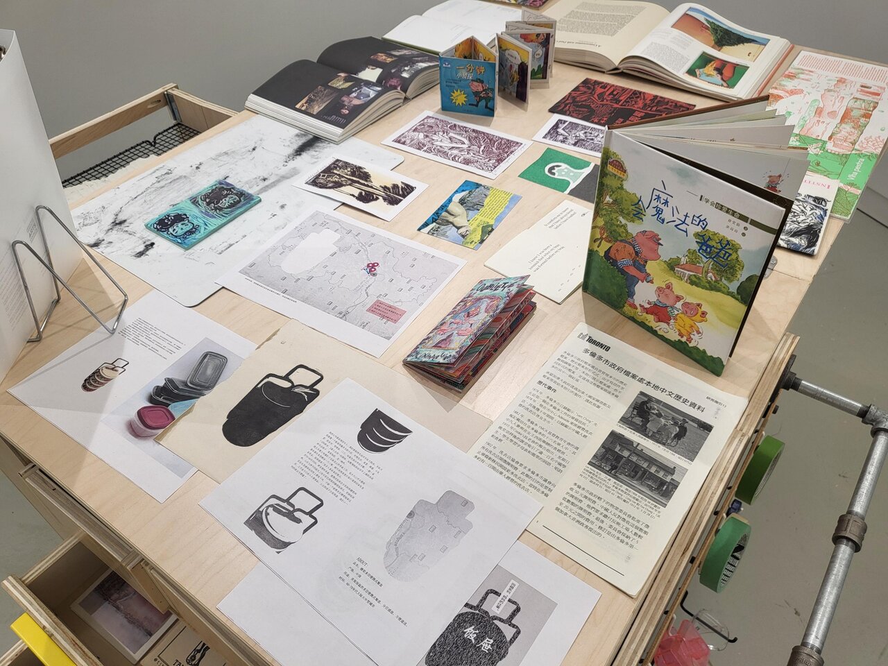 The cart grew out of Wang’s years of leading zine and printmaking workshops, and it carries the imprint of those encounters. On display were publications from her community projects, including an artist-in-residence initiative at the Richmond Hill Public Library, collaborations with her mother, artist Dandan Zhu, and her own artist book collection. The range from zines and illustrated books to more experimental formats underscored the accessibility and diversity of print culture.