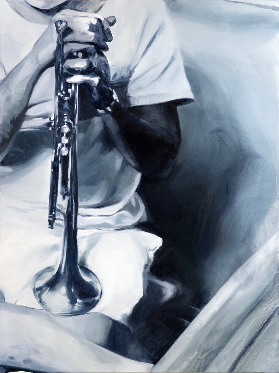While paintings such as Alphorn and Guido include meticulous oils on canvas with musical instruments as subjects, the miming of sound with image is not apparent.
