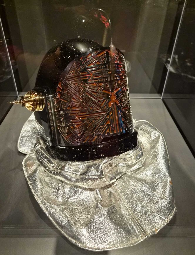 Ranbir Sidhu, Mask as Monument, 2020, fiberglass, aluminized Nomex, acrylic paint, stainless steel, 24-karat gold