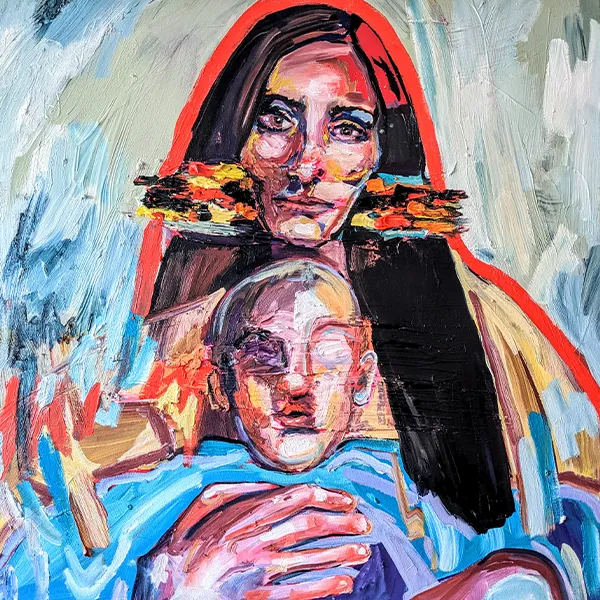 Montina Hussey, Mother and Child, oil on canvas, 24 x 24 inches
