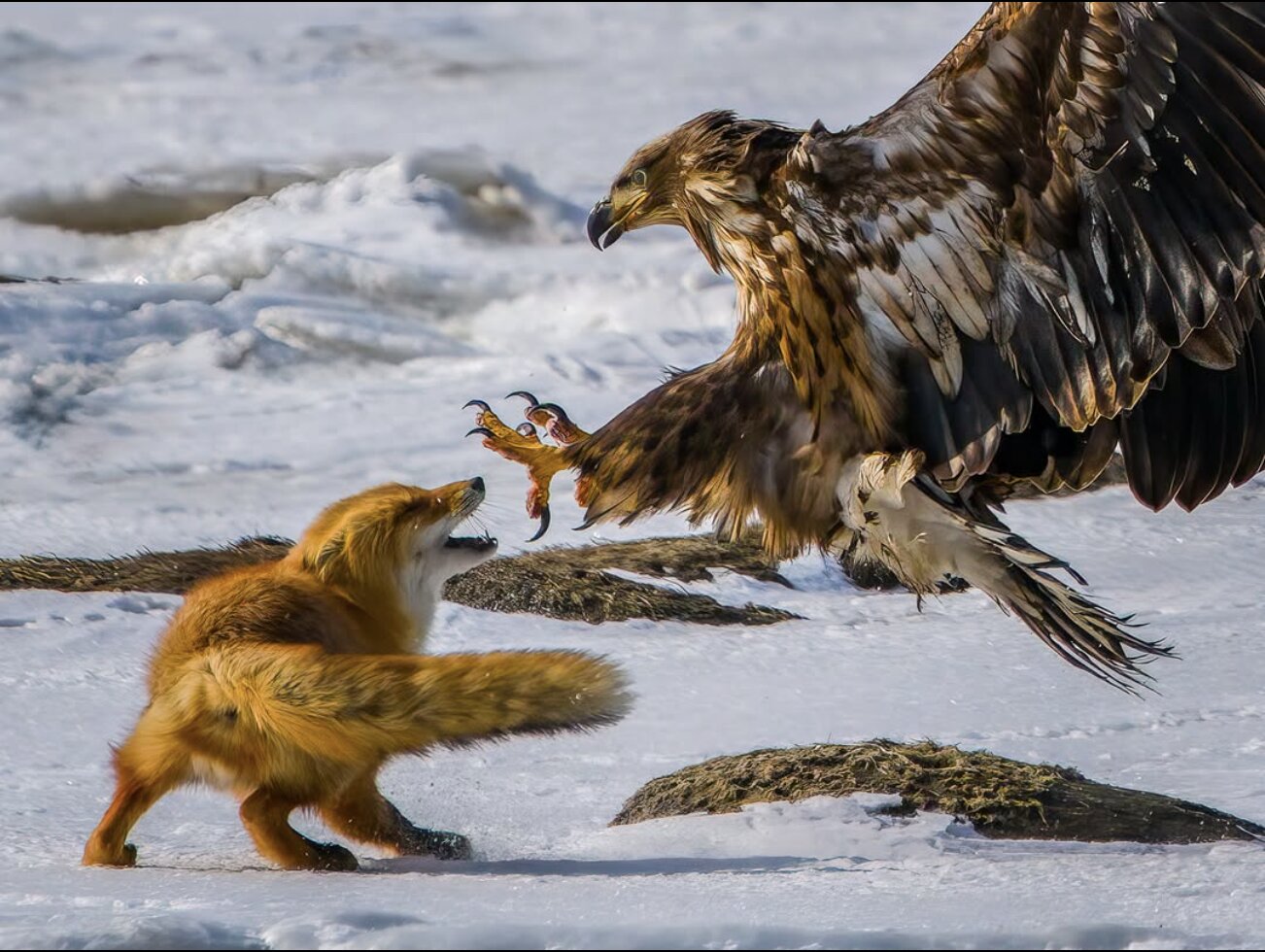 First Place ROMwpyON – Adult Category, Red Fox Close Encounter with White-tailed Sea Eagle by Philip Wong, Animals in their Environment