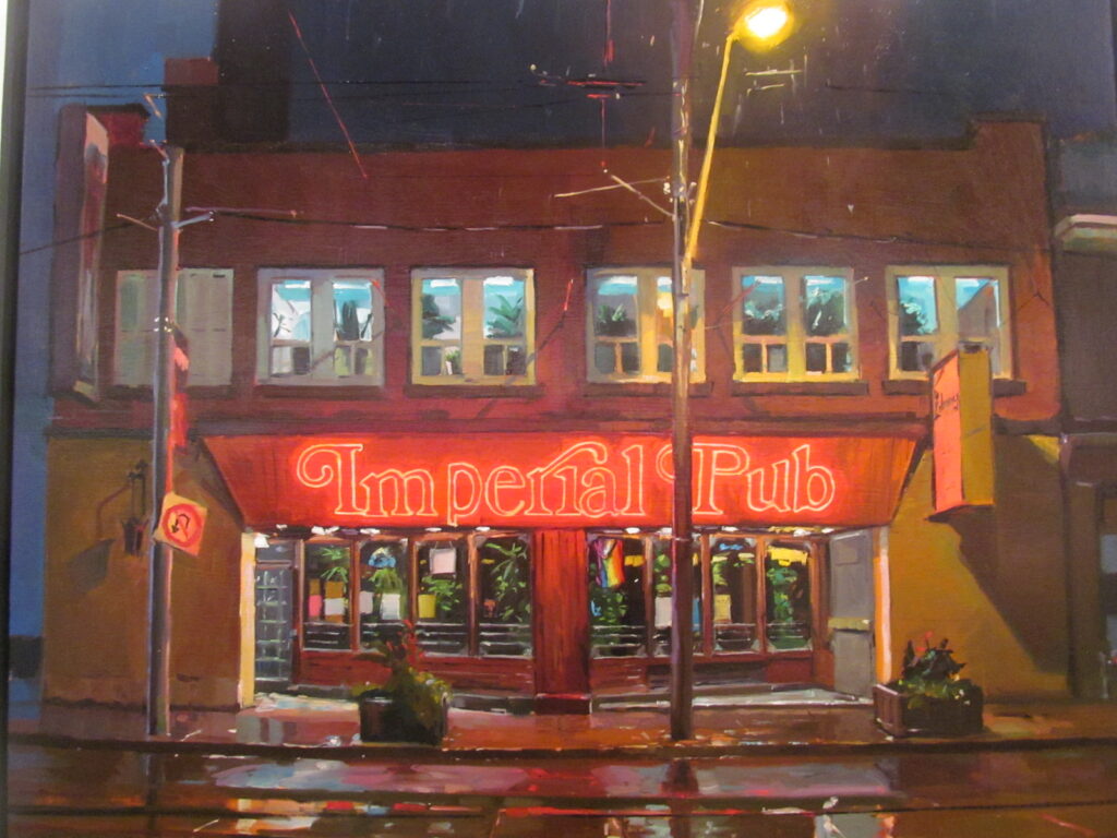 Omar Canales-Cisneros was back at the Project from last year but with his own booth. He seemed pleased with the new venue and the opening night crowd. I liked Brian Harvey’s painting of the old Imperial Pub, recently closed. He also had a painting of Sneaky Dees on College Street which is still open. I also liked painter Ned Palmer’s urban paintings of Bloor West and Spadina.