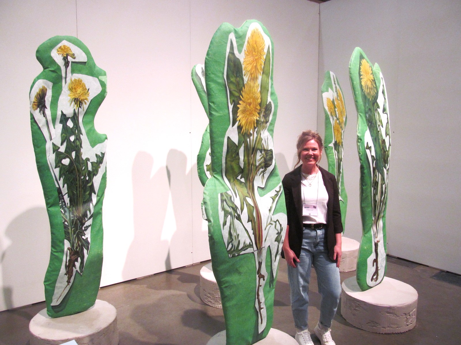 Chelsea Brant had an installation Stand Tall Fit In with colourful free standing painted dandelions that depicted human connection and, for some of us, hoping for spring, a colourful moment. Mallory Tolcher’s Dress Code used reclaimed jewellery to create basketball nets connecting sport, art and fashion.