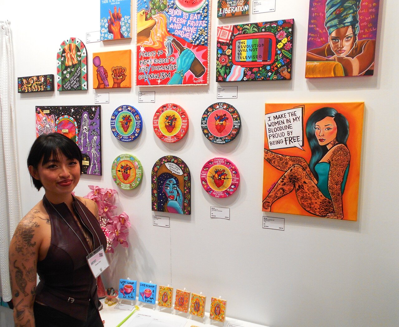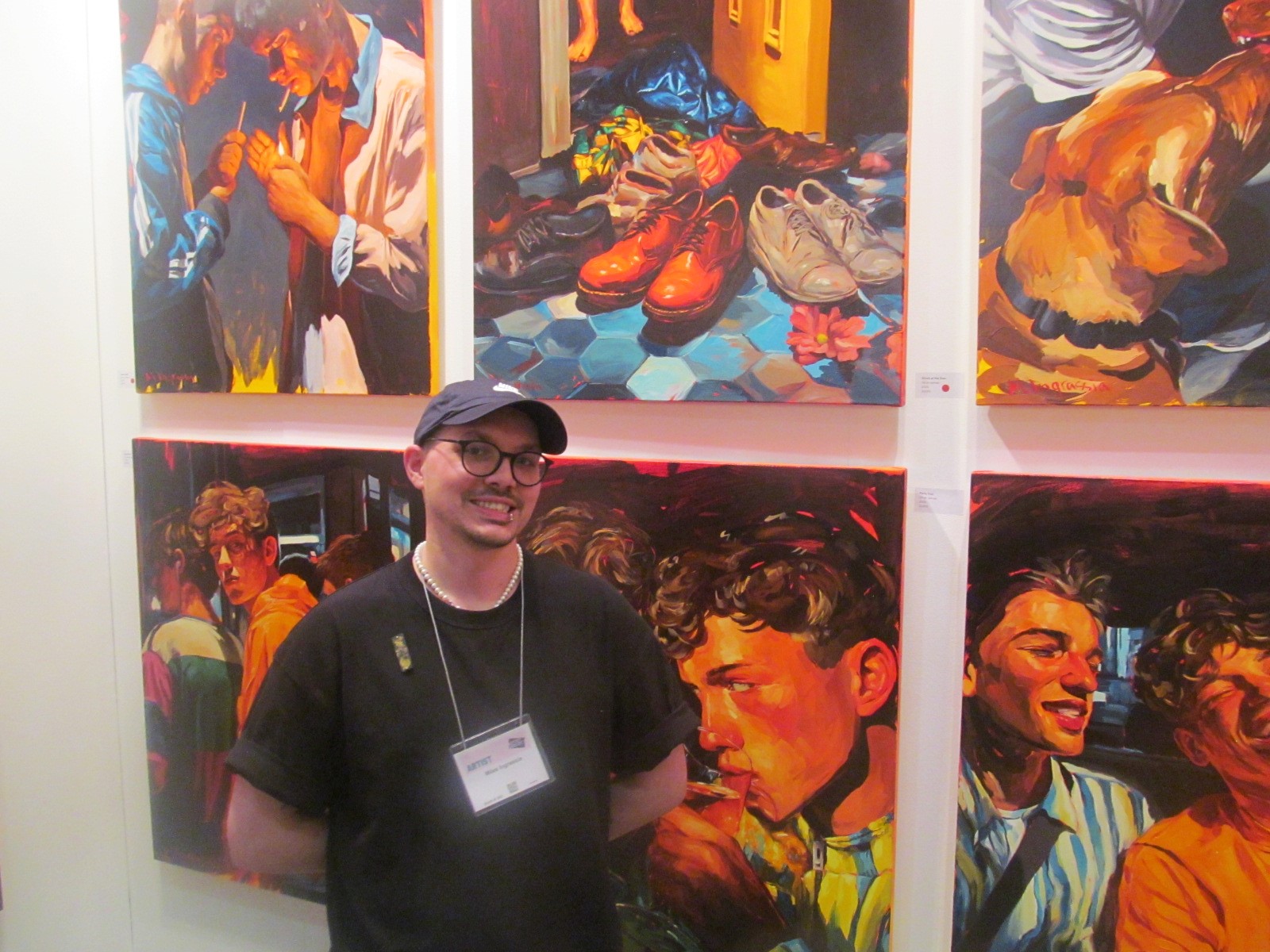 I stopped by Toronto based painter, Miles Ingrassia’s booth. It was his fourth time at the Project, and he said that he had met participants who returned yearly and had benefited from the sales. He had sold three of his colourful paintings of playful youth already. New artists to the Project like Emma Chlumecky of Windsor Ontario were happy to have a booth and get the attention of the opening crowds.