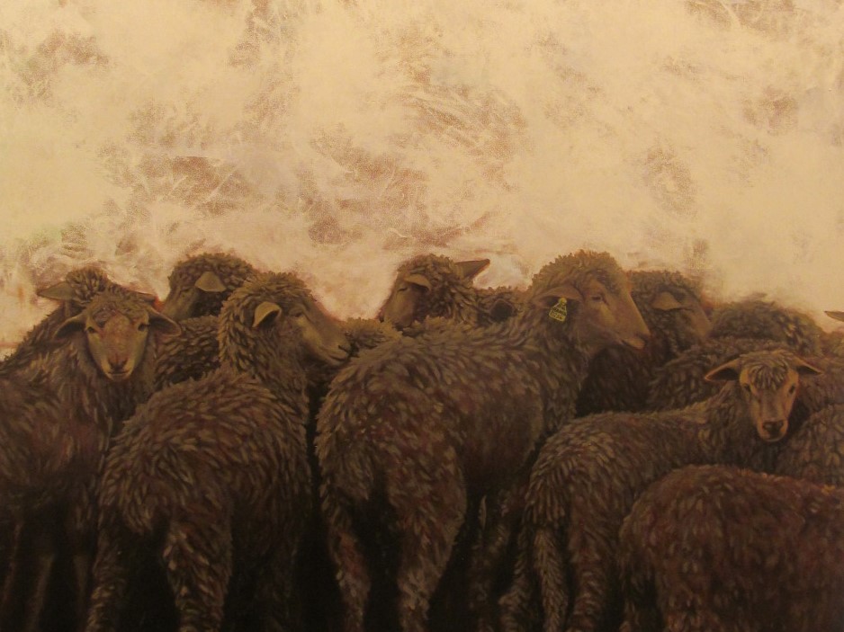 Artist Tommy Feiler, who also teaches at Durham College uses found footage of home movies from eBay to create digital photographs. He was impressed with the quality of work in this years Artist Project. Another painting that attracted me was One Among the Herd by Oliviana Cinco oil and acrylic on canvas. As I calculated my way through the busy crowd at the opening night I could relate to the herd of sheep.