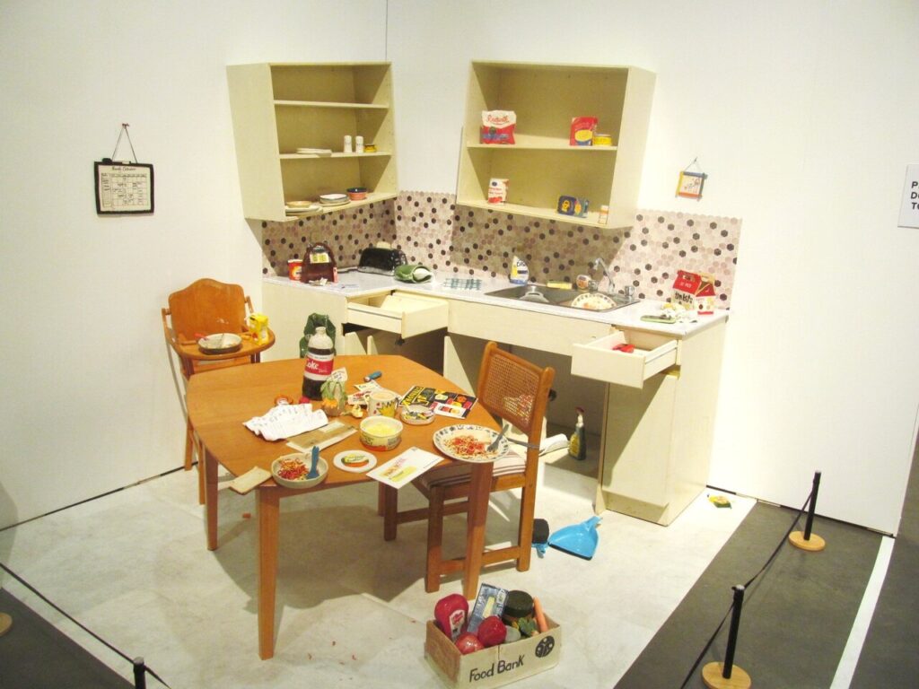 I talked with Untapped Artist Sydney Hanson of Markham who works with textiles painting and silk screening on them. She was excited about the opportunity to display her work. Raegan Little’s ceramic and mixed media installation Unbalanced was whimsically wonderful with its assortment of recreated objects made from ceramics including iPhones with cracked screens, a plate of spaghettini and an empty box of Tim Bites.